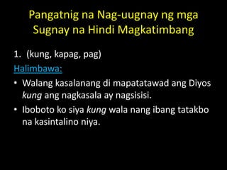 Sa pamayanan-g nagkakaisa lahat ay masaya. PANGATNIG Narito ang kahulugan kung ano ang pangatnig at ang mga halimbawa nito. Kahulugan Ito ay isa sa walong mga bahagi ng pananalita na mga katagang nagdudugtong sa magkakasunud-sunod na salita sa isang pangungusap para magiging magaan o madulas ang pagbigkas nito.