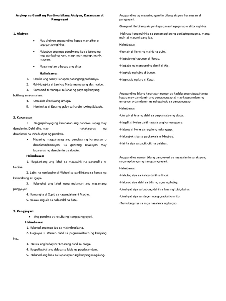 Angkop Na Gamit Ng Pandiwa Bilang Aksiyon Pdf