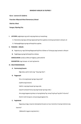 Banghay Aralin Sa Filipino 1 Salitang Kilos