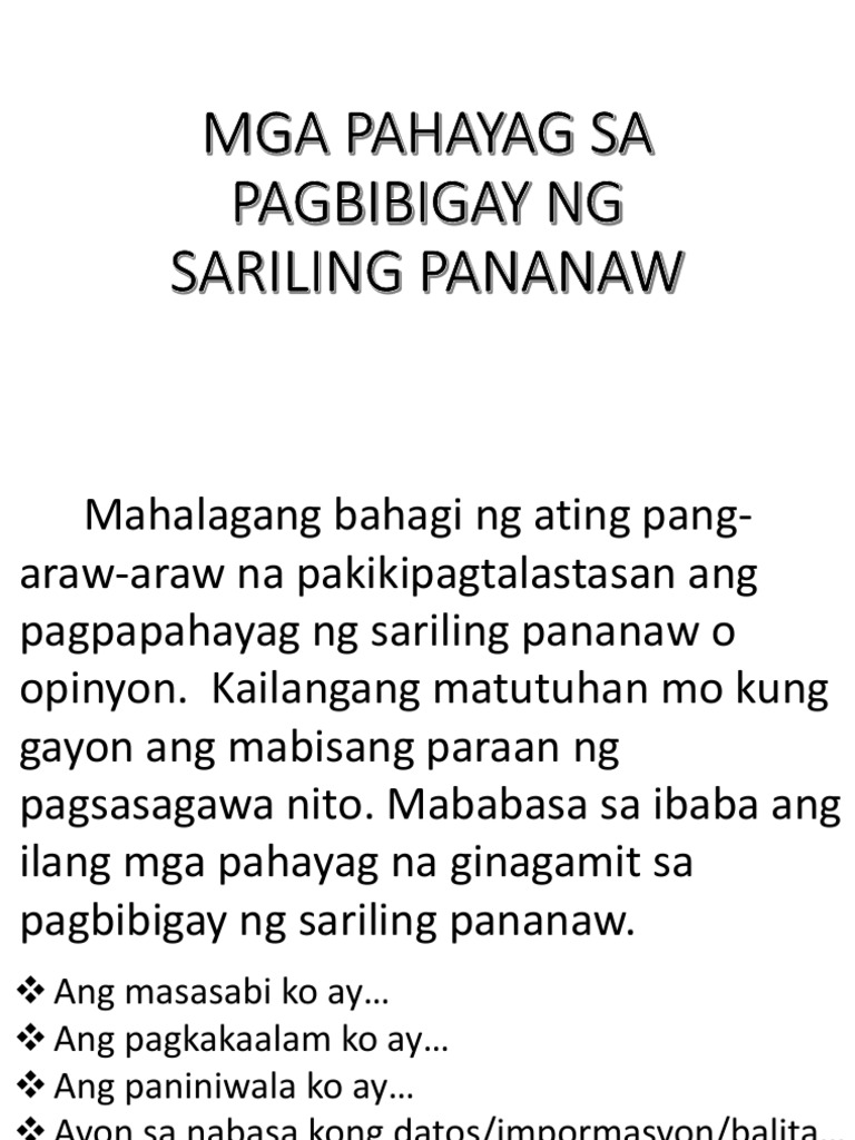 Mga Pahayag Sa Pagbibigay Ng Sariling Pananaw Pdf